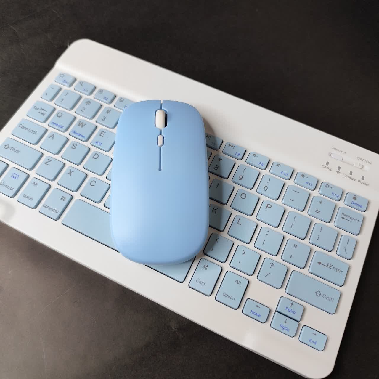 مینی کیبورد و موس بلوتوثی مدل KIT را میتوان یکی از بهترین کیبوردو موس های بلوتوثی موجود دانست. این کیبورد و موس قابلیت اتصال به تلفن همراه، رایانه، تبلت، تلویزیون و ... را دارد. این اتصال از طریق بلوتوث انجام میشود. جنس کیبورد (ABS+آلومینیوم) و همچنین بی صدا بودن و کارکرد نرم دکمهها را میتوان از ویژگیهای حائز اهمیت آن به شمار آورد. بین کلیدها مقداری فاصله قرار دارد که اشتباهات تایپی را تا حد بسیار زیادی کاهش میدهد. چهار چراغ نمایشگر روی کیبورد قرار داده شده است که شامل نشاندهنده پاور، شارژ، اتصال بلوتوث و CapsLock میشود. این کیبورد شارژی است و از طریق کابل شارژ که به همراه آن قرار داده شده است، شارژ میگیرد و موس به وسیله دو عدد باطری نیم قلم کار میکند. اتصال این کیبورد و موس کاملاً بی سیم بوده که این اتصال بلوتوثی تا 10 متر قطع نمیشود. طراحی ارگونومیک این کالا به گونهای است که دست خسته نشود. ابعاد کیبورد 6× 151 × 245 MM است. تعداد کلیدهای کیبورد 78 عدد و کلید های موس 4 عدد می باشد. این کیبورد دارای کلیدهای چند رسانه ای، فوق العاده نازک، فلزی، سبک و قابل حمل می باشد. لطفاً در صورتی که رنگ خاصی مد نظرتان هست قبل از خرید از موجودی آن رنگ استعلام بگیرید.