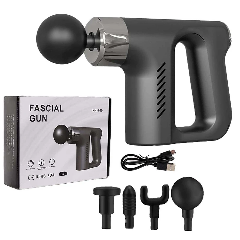 ماساژور fascial gun مدل KH-740 ماساژوری سبک و کم حجم برای هر زمان و هر مکان است. با این ماساژور به راحتی میتوانید کمر خود را به راحتی ماساژ دهید.این ماساژور با وارد کردن ضربه های کوبه ای به عمق عضلات نفوذ کرده و با وارد کردن ضربه در عمق مفاصل اثر خاص خود را بر جای میگذارد.این ماساژور تفنگی شارژی با داشتن 4 سری قابل تعویض و قابل شستشو به راحتی کار با این محصول کمک بسیاری کرده است. ضمناً چون این دستگاه با باتری لیتیومی که داراست قابل شارژ است آن را با خود در سفر نیز میتوانید حمل کنید. کافیست کابل USB این محصول را که از نوع type c (تایپ سی) است را به کلگی گوشی خود وصل کنید تا پس از دو ساعت شارژ شود. سپس شما میتونید به مدت 2 الی 3 ساعت با توجه به سرعت و فشاری که استفاده میکنید از این محصول بدون نیاز به نزدیک بودن به برق و دردسر های کوتاهی سیم برق و نبود پریز در کنار تخت و یا مبل از آن استفاده ببرید
