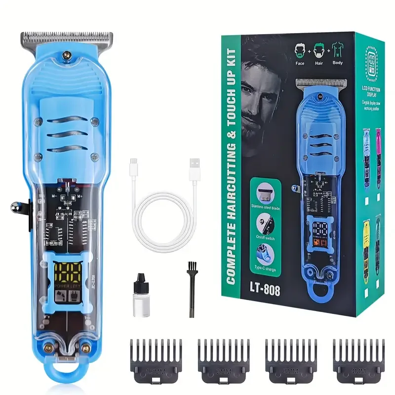 ماشین اصلاح خط زن جدید LT-808 دارای موتور قدرتمند و تیغه استیل و همچنین بدنه بسیار جذاب شفاف ، دارای نشانگر زمان شارژ و زمان روغن کاری و همچنین نمایشگر درصد شارژ است.
