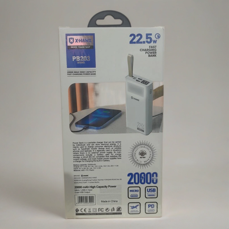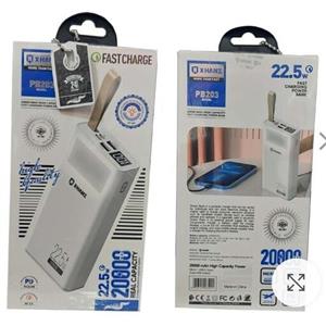 ظرفیت 20000 میلی آمپر ساعت 22.5 واتی شدت جریان 22.5 وات فست شارژ و توربو شارژ 6 ماه گارانتی دو درگاه خروجی یو اس بی فست شارژ دو درگاه ورودی برای شارژ پاوربانک دارای ال ای دی روشنایی دارای نمایشگر دیجیتالی وزن 450 گرم