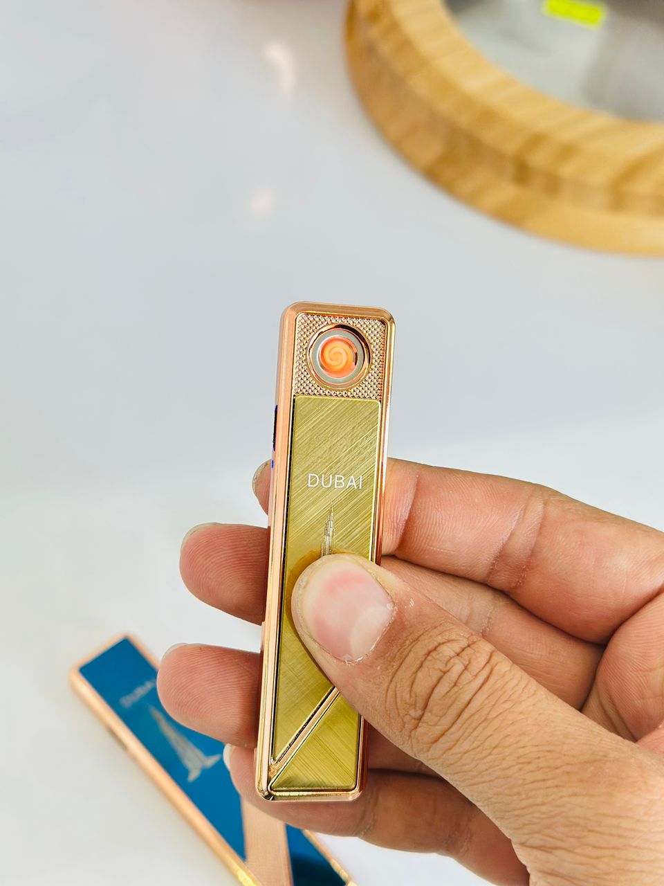 فندک شارژی CIGER مدل Dubai USB Lighter فندک شارژی CIGER مدل Dubai ترکیبی از طراحی لوکس و فناوری مدرن است. بدنهی فلزی براق با طرح برج خلیفه (Burj Khalifa) جلوهای خاص و لاکچری به آن داده و آن را به انتخابی عالی برای هدیه یا استفادهی روزمره تبدیل کرده است. ⚙️ مشخصات فنی: برند: GIGER مدل: Dubai USB Lighter نوع: فندک شارژی برقی (بدون گاز) نحوه شارژ: کابل USB (همراه محصول) جنس بدنه: فلز براق با طراحی طلایی و لبههای رزگلد رنگها: طلایی، آبی متالیک، مشکی براق ویژگی: بدون شعله، ضد باد (Windproof) ایمنی بالا: خاموشی خودکار پس از چند ثانیه استفاده 💎 مزایا: طراحی لاکچری با نقش برج خلیفه (Dubai Style) قابل شارژ با کابل USB (بدون نیاز به گاز یا بنزین) مناسب برای استفاده در فضاهای باز و بادخیز شعلهی برقی ایمن و تمیز بدون تولید دود هدیهای شیک و خاص برای آقایان و خانمها ⚡ نتیجه: با فندک شارژی GIGER مدل Dubai همیشه آمادهی روشن کردن باشید — شیک، مدرن، بادوام و بدون نیاز به گاز!